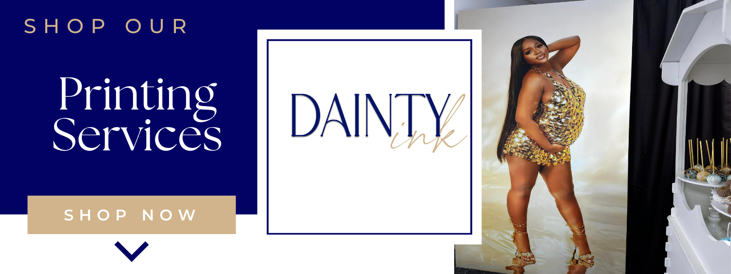Thank you for choosing Dainty! Here at Dainty Treats & Design it is our mission to provide an over-the-top experience to our customers by proving detailed, high-quality treats/designs. Whether you are purchasing a treats, prints, or supplies, you can count on us for a one of a kind experience.